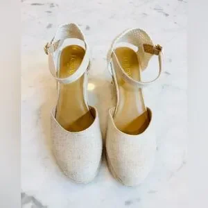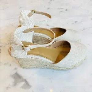 Preowned Women’s J. Crew Cream/Tan Espadrille Shoes with Ankle Strap Size 6