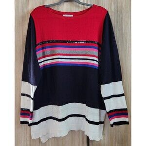 Liz Claiborne Women's Sweater 3X Lightweight Cotton Long Sleeve Pullover Bling