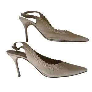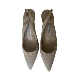 MANOLO BLAHNIK Beige Suede Slingback Heels