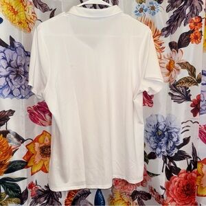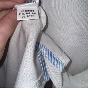 The Vineyard Vines Performance Pique Polo in White is a stylish and versatile top for women in size Large. Made of a polyester and spandex blend, this polo features a collared neckline, pullover closure, and short cap sleeves. With its quick-dry, moisture-wicking, and breathable fabric, it is perfect for travel, casual outings, or business endeavors. The classic preppy style, along with embroidered accents and a button detail, makes it a perfect choice for various occasions including tennis, beach days, golfing, outdoor activities, or even a cruise vacation. Easy to care for with machine washable instructions, this polo is a must-have for any wardrobe.