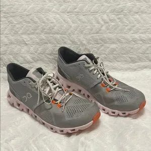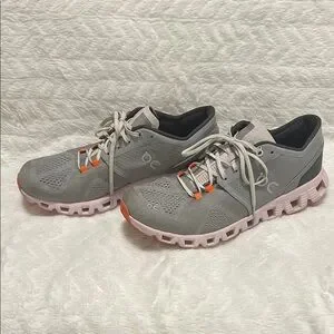 On Running Gray and Pink Sneakers