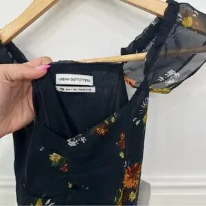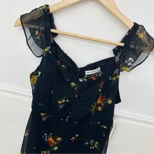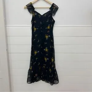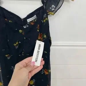 Urban Outfitters Blue and Orange Ruffled Tiered Midi Dress
