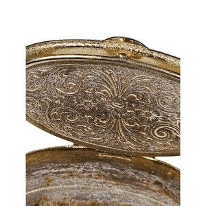 Vintage Oval Mauve Floral Design Porcelain Silver Tone Hinged Pill Trinket Box.