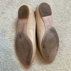 Step out in style with these elegant tan flats, featuring a chic gold chain detail. Perfect for any occasion, these shoes offer both comfort and sophistication.