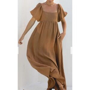 Solia The Label French Riviera Linen Dress in Toffee Size XS