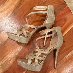 Jessica Simpson “Bellanne” Elegant Women's Platform Strappy Heels pale gold