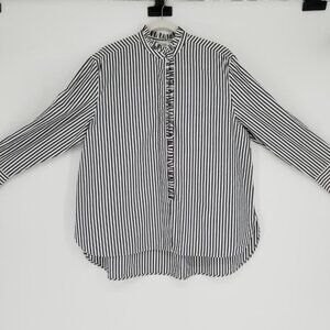 COS Button Down Oversized Long-Sleeve Striped Shirt w/ ruffle Sz.12 - Cotton