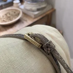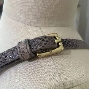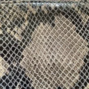 This listing is for one authentic Tory Burch snakeskin print leather crossbody handbag. This was my daughter’s handbag. It is in excellent condition! It has minor scratches on the logo and faint marks on interior. This hand bag has a very long strap to wear crossbody. It has 3 holes but one hole on strap has only been used. Please refer to all photos and ask any questions that you may have. Measures approximately 10 1/2” long by 7” wide.