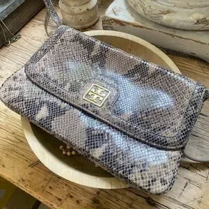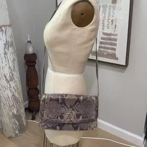 Authentic Tory Burch Python Print Leather Crossbody Handbag
