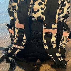Stylish leopard print backpack perfect for everyday use. Features a unique design with black accents. Ideal for those who love a bold look.