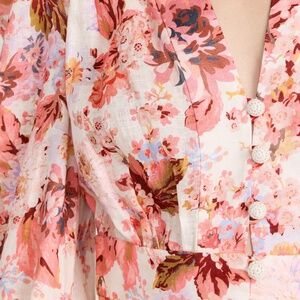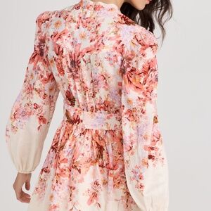 A polished Zimmermann dress in pure linen, featuring a creatively arranged floral pattern for an eye-catching look. Puff shoulders add to the romantic feel of this silhouette