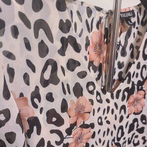 Roz & Ali Leopard Floral Print Blouse - Sheer, Flowing 3/4 Sleeve Top