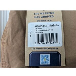 Chubbies The Staples 7" Originals Stretch Twill Shorts Brown Size XL NWT