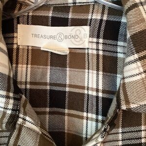 Treasure & Bond Olive, Black and Cream Plaid Shacket - M