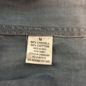 Size medium Olive + Oak sleeveless chambray midi dress with tie-shoulders, elastic waist, and pockets. Lyocell/cotton blend.