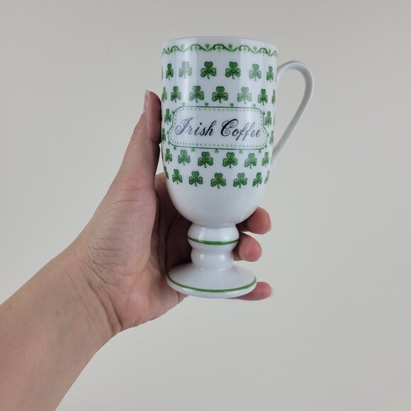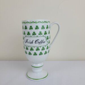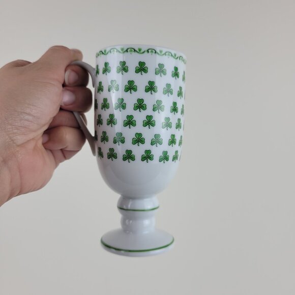 Vintage Irish Coffee Mug Footed Pedestal Green lucky Clover Shamrock 1345, Japan