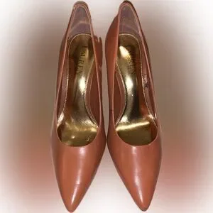 Ralph Lauren Alani Tan Leather Pump Stiletto Heels Pointed Toe