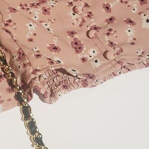 Elevate your wardrobe with this chic and alluring Large Women's Crop Long Sleeve Woven Blouse from Love Tree. Adorned with a delicate pink floral pattern, it exudes feminine charm. Featuring a corset-style design, this blouse effortlessly combines elegance with a touch of romance for a truly captivating look.