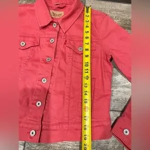 Levi's Women's Dark Coral Color Cropped Casual Jean Jacket Trucker Stretch Sz M