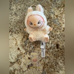 These cuties are Lafufu’s - meaning, they are imitation Labubu’s. They come in their original packaging - box and plastic bag - and they come with their ID card. Each one comes with the key chain connected so that it can be worn as a bag charm. Unfortunately, I bought these for myself thinking they were real but soon realized each one is a FAKE. I was disappointed but then learned that some people do not mind these because they are much less expensive than the real ones which can go up to 4x the price. So, I’m offering them to my Poshmark friends as a set of 5 and for less than I paid as a little present from me to you!