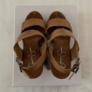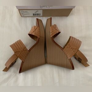 Preowned, Great Condition, Size 8M, Color Buff which is a neautral tan shade with a classic stacked heel appearance. Love these so much, but they no longer fit. (Not happy about that.) Please see pics as part of the description. Picture #11 shows marks on platform below the ball of each foot, very unnoticeable during wear. I actually believe the marks were always there since manufacturing. These are so easy to walk in with the wedge heel, and they look amazing with everything! Will be shipped in original box.