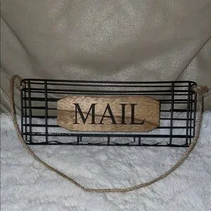 NWOT Stylish black wire mail holder with a wooden 'MAIL' sign. Perfect for organizing letters. Width measures 12”. Height measures 4.25”. Smoke & pet free home.