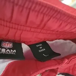 Vibrant red NFL shorts. Ideal for sports and casual wear.