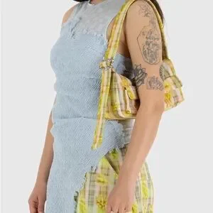 This BAGGU shoulder bag showcases a vibrant blend of orange and yellow hues, perfect for adding a splash of color to your ensemble. Crafted with a casual, slouchy style, it features a long adjustable strap for comfortable wear. The artistic design makes it an ideal accessory for those who appreciate unique and eye-catching fashion.