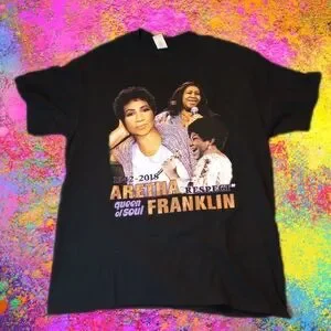Honor the legendary Aretha Franklin with this commemorative shirt. Featuring a front and back hit and the words "Queen of Soul 1942-2018," this shirt is perfect for fans and music lovers alike. Pay tribute to her iconic legacy and celebrate the life of the beloved queen of soul.