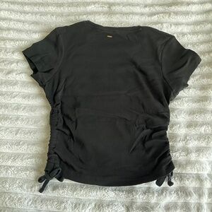 Excellent used condition: GUESS Black Ribbed Capped Sleeves Crop Top Size M