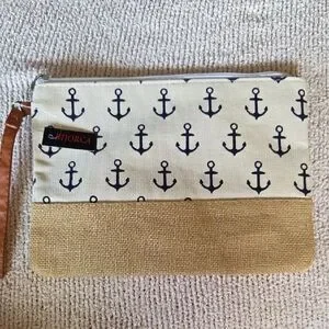 Stylish clutch featuring a navy anchor print. Perfect for adding a nautical touch to your outfit.