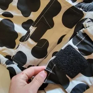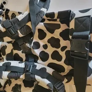 The Tula free to grow carrier features a playful black and white cow print design, offering both style and comfort. With padded shoulder straps and a soft fabric, it ensures a snug and secure fit. Ideal for those who appreciate a bold and unique accessory. Also has button attachable hood and infant insert.