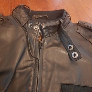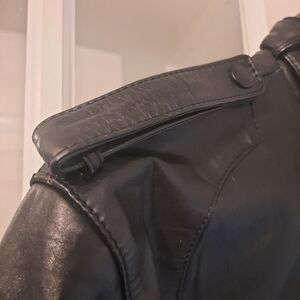 Elevate your style with this sleek black leather jacket. Perfect for any occasion, this jacket offers both comfort and sophistication.