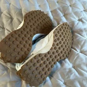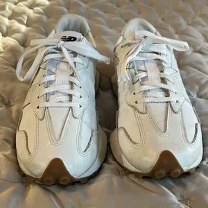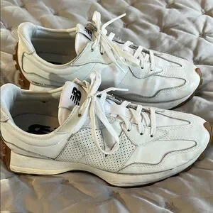 Experience the perfect blend of athletic functionality and casual style with these New Balance leather sneakers. Crafted of leather they feature a chunky, contemporary design with layered panels and perforated details. The substantial white midsole and gumsoles add a modern touch, making them ideal for versatile everyday wear. Sz 9.5