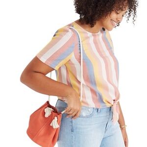 Madewell Button Back Tie Tee in Sherbet Stripe Short Sleeve Cotton Blouse Beach