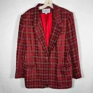 Vintage Lynn & Co Women's Red Plaid Blazer Sz 14