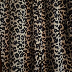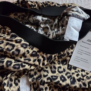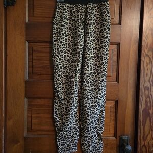 Very lightweight leopard print jogger pants. Elastic waistband, side pockets & elastic at the ankles.
