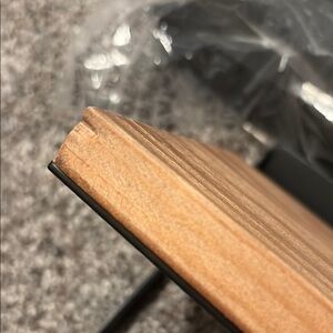 Stylish wall shelf from Pottery Barn Kids. Features a sleek black frame with a warm brown wooden surface. Perfect for displaying decor. New with hardware. Edges imperfections pictured.