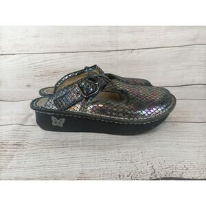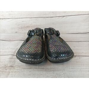 Alegria Womens Classic Brilliant Snake Clogs Sz 35 (US 5) Metallic Black
