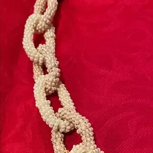 This elegant cream beaded necklace adds a touch of sophistication to any outfit. Perfect for both casual and formal occasions.