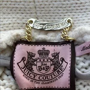 Embrace warmth and style with this Juicy Couture cream cardigan, featuring a cozy shawl collar and intricate cable knit pattern. Its mid-thigh length and ribbed texture offer a snug fit, making it an ideal choice for chilly days.