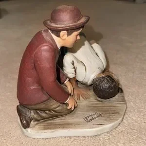 This exquisite Norman Rockwell ceramic art piece captures a moment of curiosity and exploration. The figures are meticulously crafted, showcasing intricate details in their poses and expressions. The vibrant red and white colors enhance the visual appeal, making it a standout addition to any art collection.