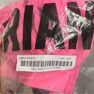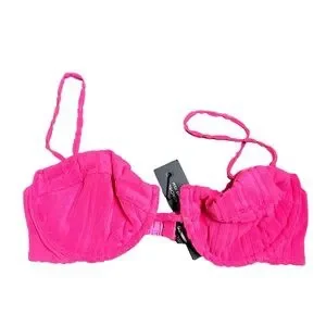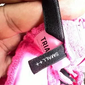 Vibrant pink bikini by Triangl Swimwear. Features a stylish design. Perfect for beach days.