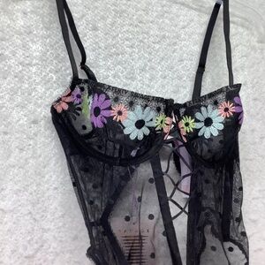 Savage X Fenty Black Floral Lace Lingerie NWT