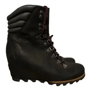 Sorel Black Lace Up Wedge Boots with Weatherproof Design