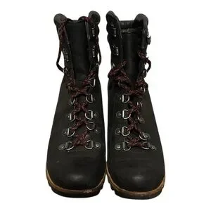 These Sorel lace-up boots feature a sleek black leather construction with a high-top design for added ankle support. The robust sole ensures excellent grip and traction, making them perfect for all-weather conditions. With a stylish yet functional appearance, these boots are ideal for both urban and outdoor adventures.
