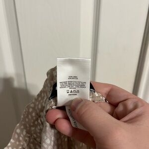 Express Linen Pants Wide Leg Super High Rise Tan White Spots Ruffle Hem