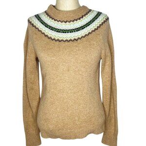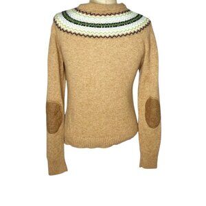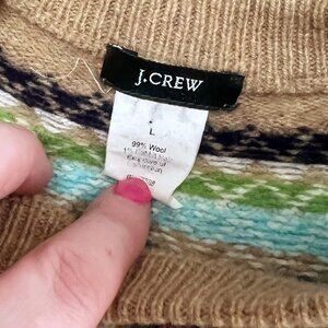 VTG J Crew Sweater Womens Size L Brown Green Blue Fair Isle Crew Neck Wool