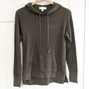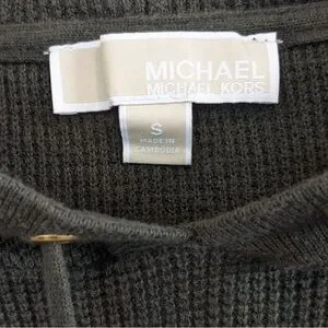 Embrace elegance with this Michael Kors green cowl neck sweater, crafted from a soft knit material for a comfortable fit. The rich earth tone adds a touch of sophistication, making it a versatile addition to any wardrobe. Ideal for casual outings, this sweater combines style and comfort effortlessly.