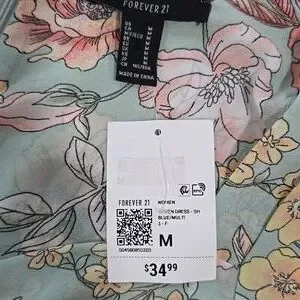 Forever 21 Dress Women's Medium Green Whimsy Floral Cut-out Long Sleeve Dress